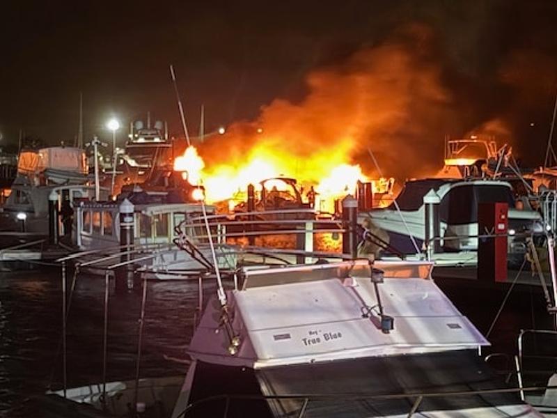 Four boats destroyed in fire at Hillarys Boat Harbour, second blaze at marina in four months